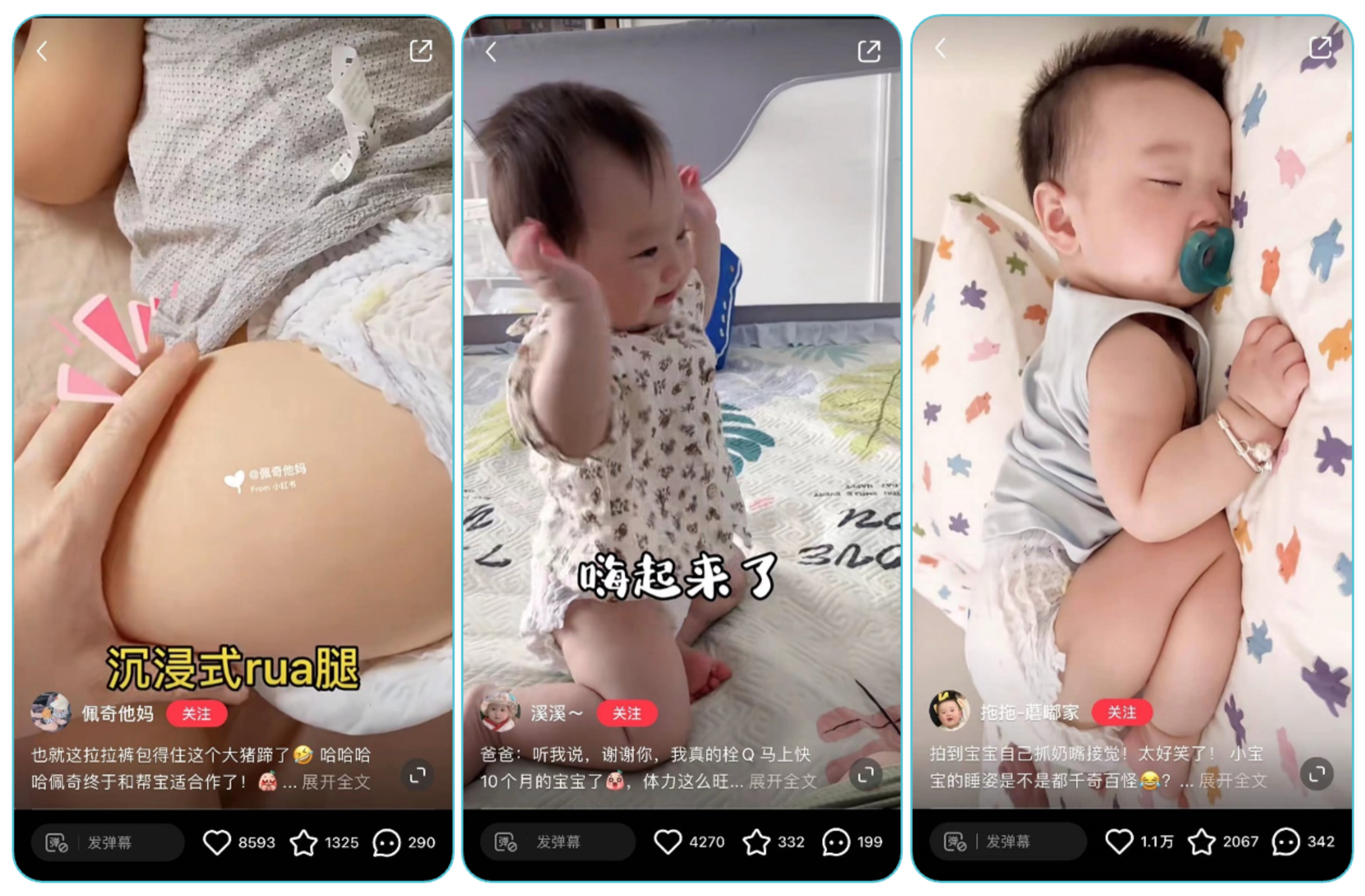 于是帮宝适将原有的透气和舒适卖点,转译为「腿粗的宝宝穿也毫无压力」,并号召宝妈们晒出人类幼崽小肉腿,凸显轻柔材质无勒痕的产品亮点,开创性的打造「晒腿场景」。此外,帮宝适依据人群需求,进一步覆盖睡眠、运动等多重场景,并根据场景特点进行细分化内容呈现。