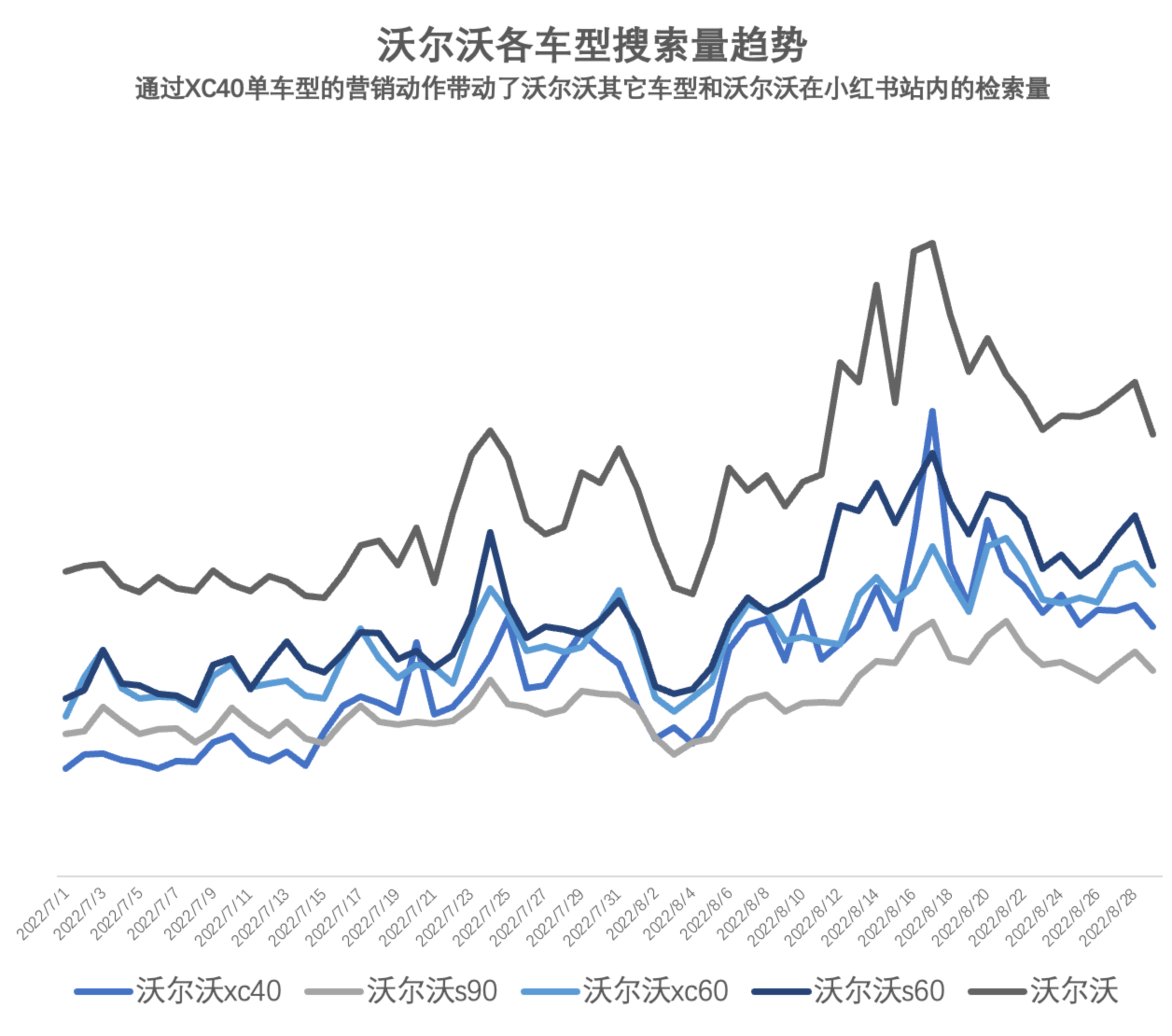 沃尔沃站内搜索增长100%,XC40站内搜索增长300%,重点关键词SOV保持TOP1