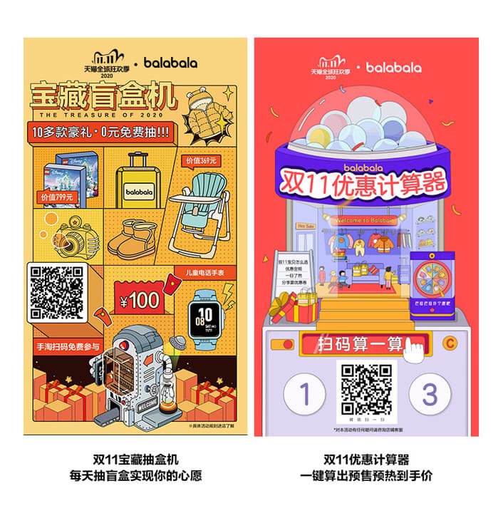 2020年巴拉巴拉为了与这群辣妈消费者进行营销对话,在天猫双11全球狂欢季大促节点中提出了“巴拉巴拉许个愿吧”的营销主题,透过跨界化,互动化、个性化、年轻化,内容化的营销手段, 结合全域曝光重塑品牌个性。