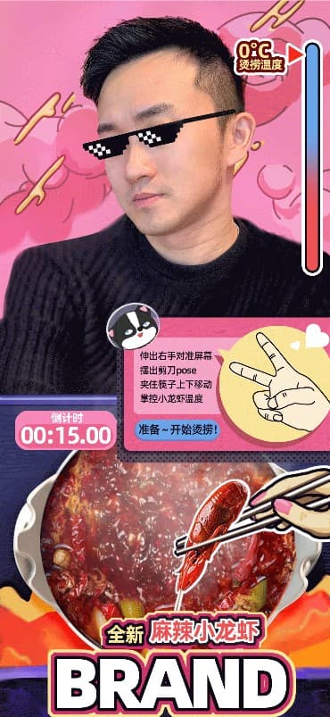 产品新口味推广是食品饮料行业最常见的营销需求之一。通过抓取年轻消费群体喜欢为爱豆打call的粉丝需求,运用简单趣味的“喂爱豆吃火锅”AR互动小游戏,将新品的新口味卖点软性植入其中,能有效提高新品认知、提升品牌好感度、达成快速种草效果,并促使消费者分享、关注与购买。