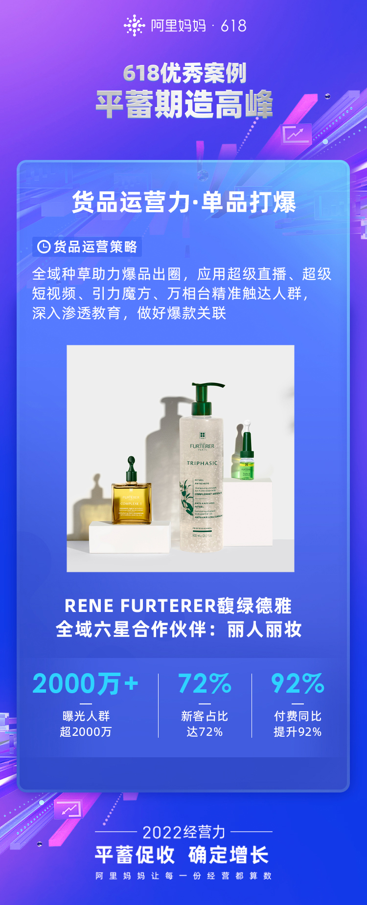 今年,复用成熟的爆品策略,馥绿德雅通过全域种草助力爆品持续出圈,应用阿里妈妈产品进一步触达防脱人群精准标签,同时将核心爆款和次爆款做好关联,全面备战618大促。